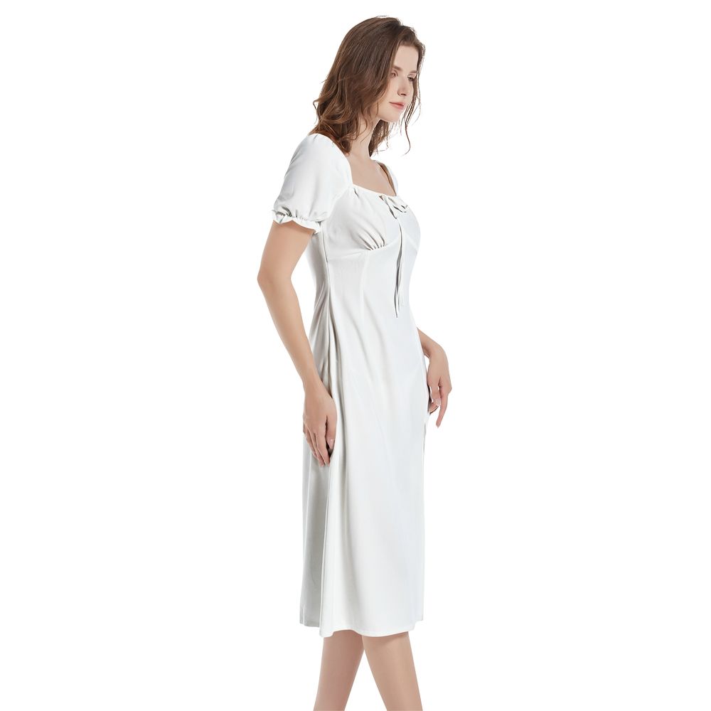 Short puff sleeve, Drawstrings, High waist, Split thigh,Side hideen zipper, Women's elegant midi dress