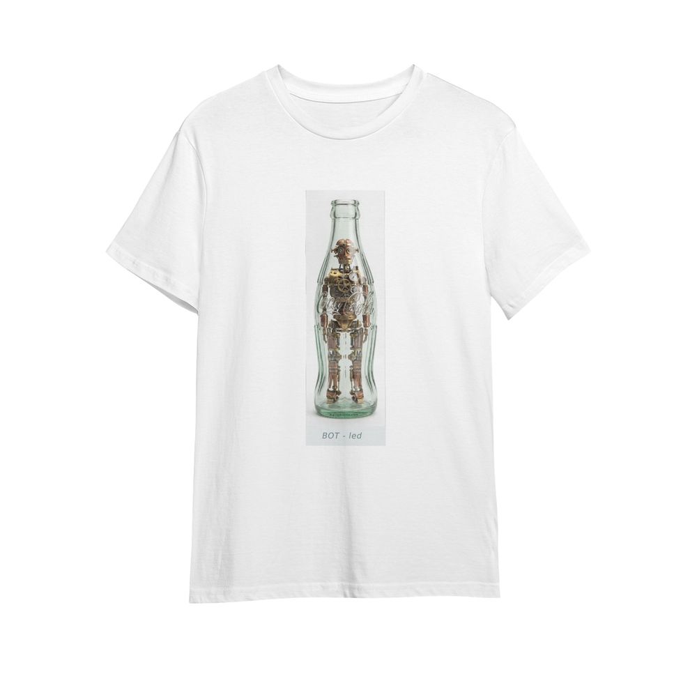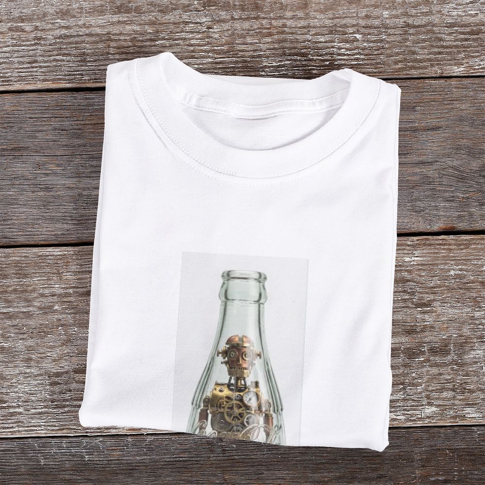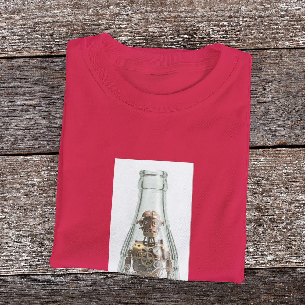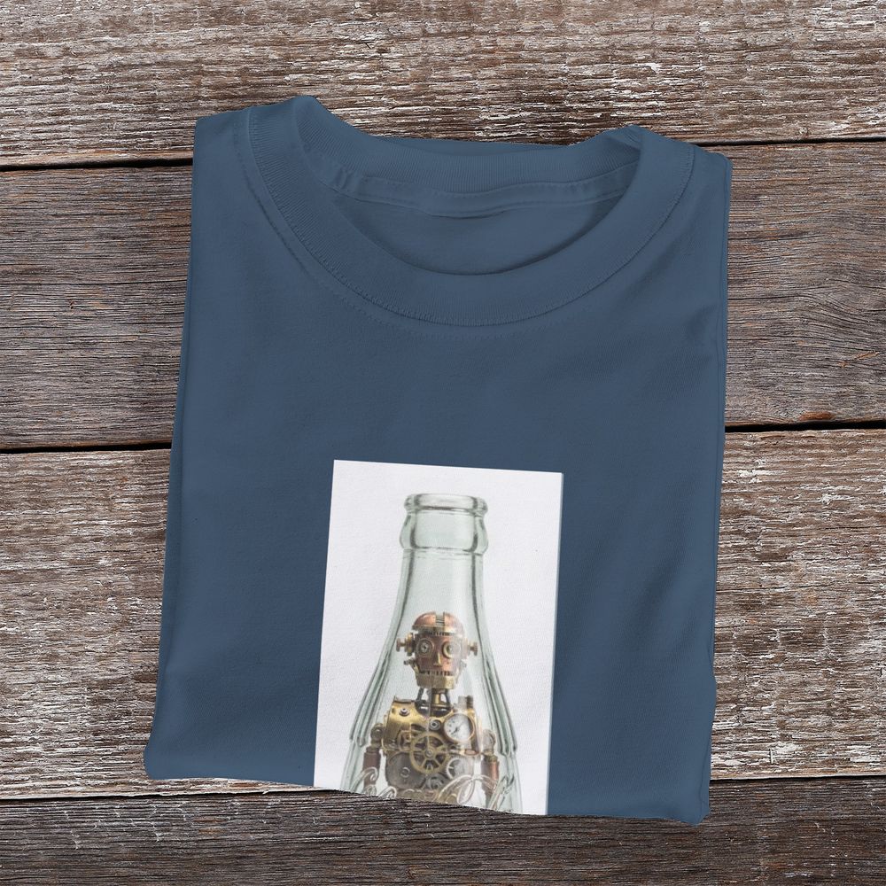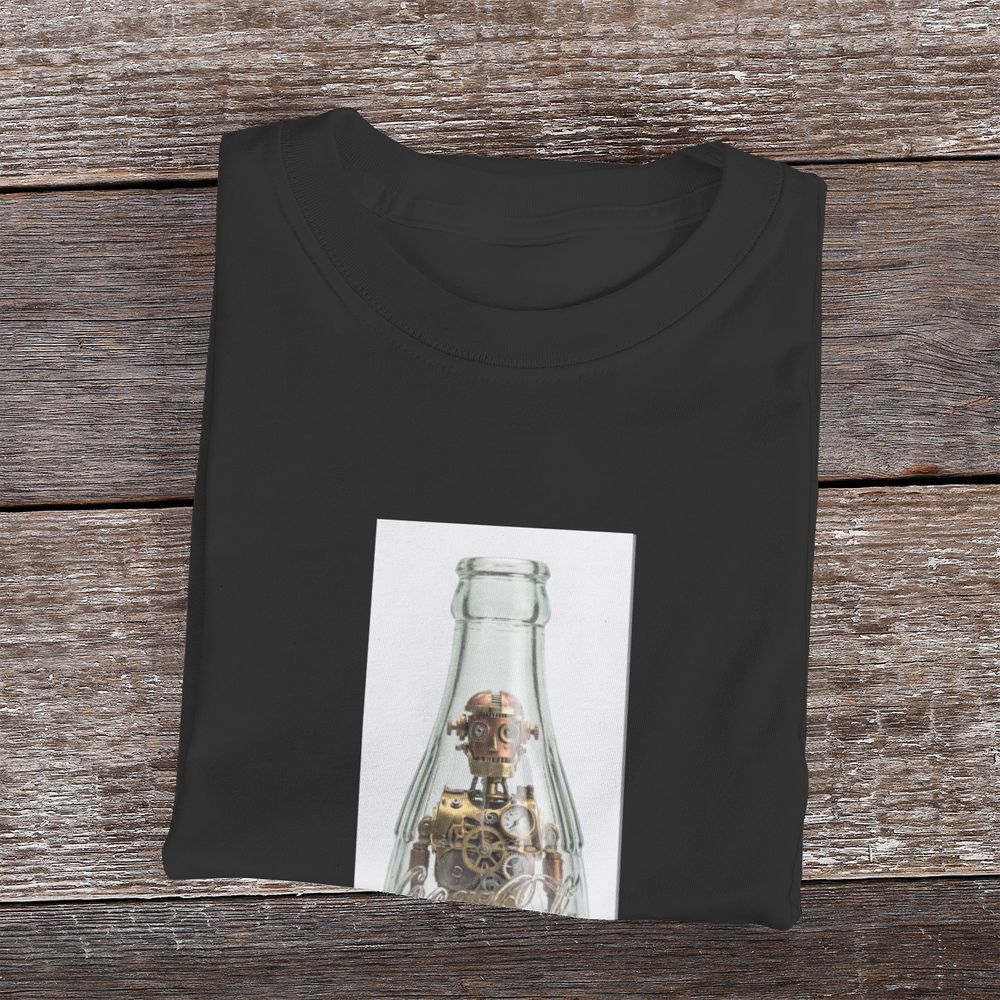Bottled Steam Punk Robot + Fraudbot v BaiterBot - Premium Cotton T-Shirt