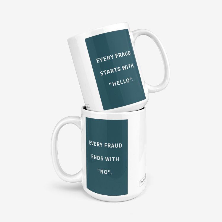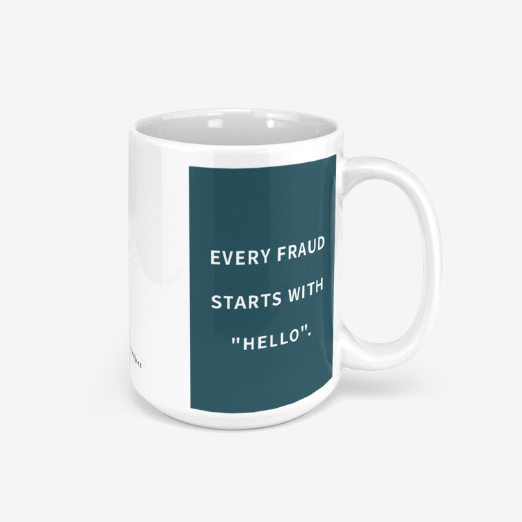 Every Fraud Starts with Hello - motivational mug - The Fraud Awareness project