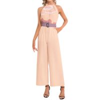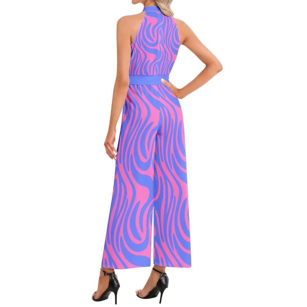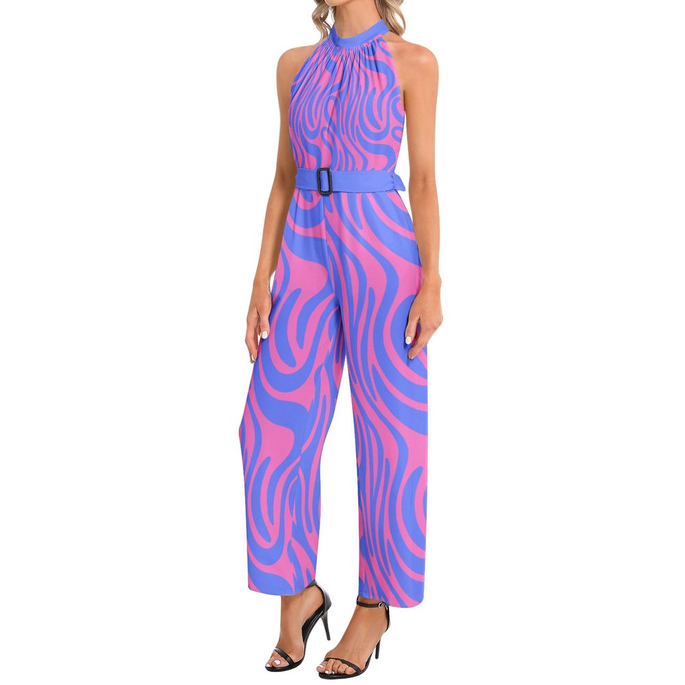 Sleeveless, Long length, Halter neck, High waist, Two inseam pockets, Belted jumpsuit