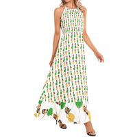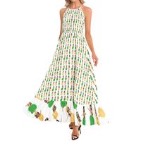 Sleeveless, Halter neck, Tie back, A-Line flared, Ruffle hem, Maxi Dress